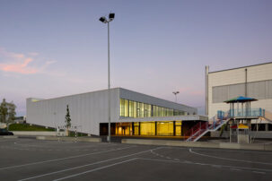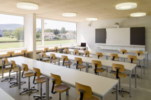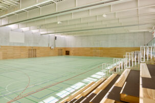 Zusätzlich sorgt eine grossen PV-Anlage (165kWp auf dem Flachdach) für eine teilautonome Energieversorgung der gesamten Schulanlage. Der sommerliche Wärmeschutz wurde mit Aussenliegenden Rafflamellenstoren in den Klassenzimmern und innenliegenden senkrecht Stoffmarkisen (auch Blendschutz) in den drei Sporthallen mit einer zentralen Wetterstation und Sektorenaufteilung gelöst. Mit einem „intelligenten“ Konzept und jahrelangem Know-how liessen sich so sehr flexible Schul- und Mehrzweckräume generieren.